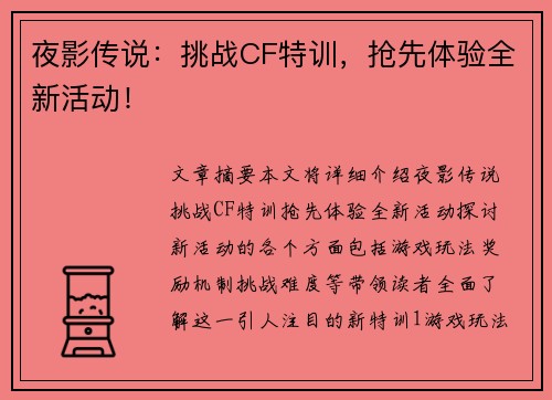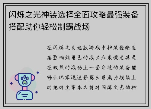 《化神传说:探寻不朽之道与天地间的无尽奥秘》是一篇深刻探索人类追求永生与至高境界的哲学性文章。在这篇文章中,我们将从四个主要方面详细解读“化神传说”这一古老的修炼理念,探讨不朽之道的意义以及它所蕴含的...